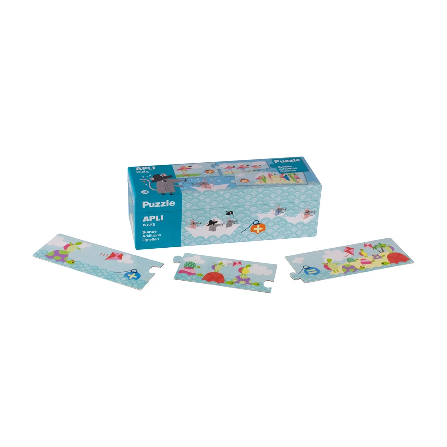 Puzzle mathématique pour se familiariser avec les nombres et les sommes. Apprenez à compter en jouant, comptez les animaux de l’île et cherchez les pièces du puzzle qui contiennent les sommes correspondantes.Chaque puzzle contient 30 pièces, soit un total de 10 séries différentes (chacune 49 x 7 cm). Les pièces sont robustes, sûres et faciles à manipuler et elles s’emboîtent parfaitement pour faciliter l’assemblage. Un puzzle original et didactique, qui aide les enfants à additionner en comptant les animaux rigolos du puzzle, développe la motricité fine et améliore la concentration.