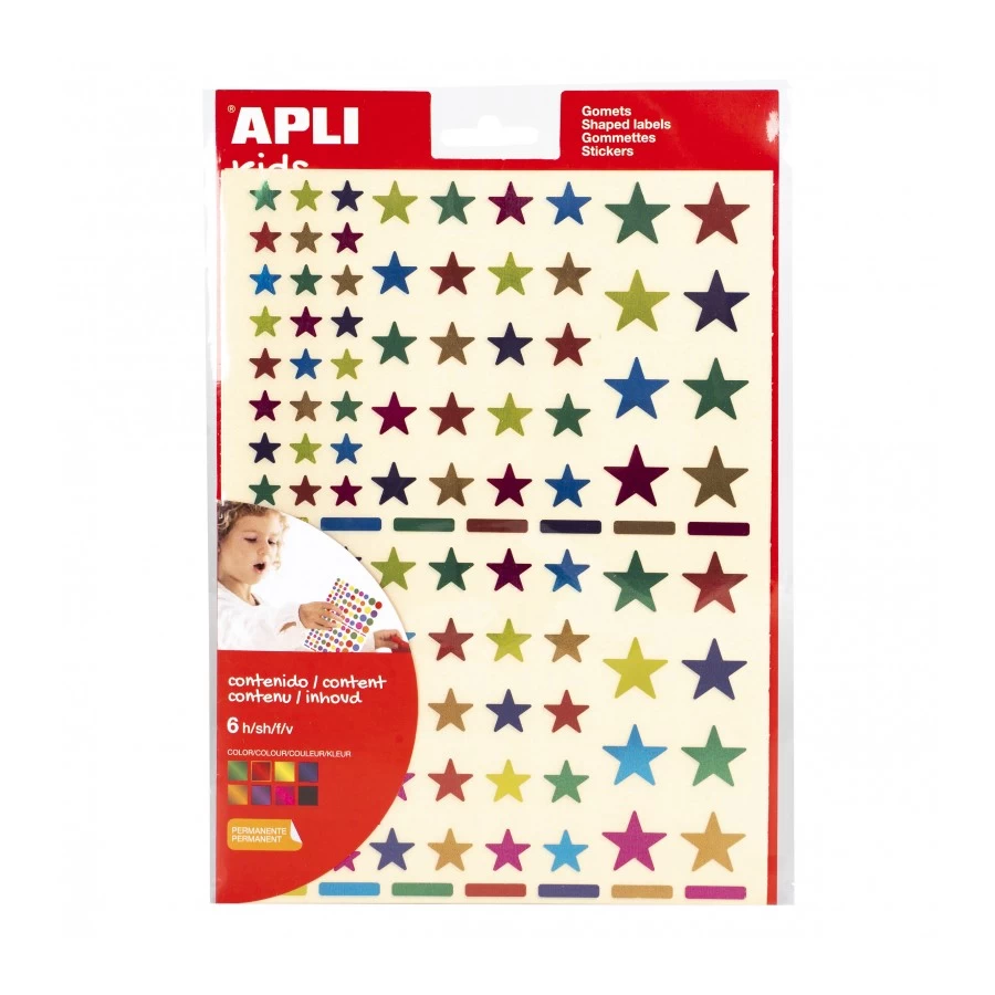 Autocollants éducatifs adhésifs permanents, de différentes couleurs métalliques : vert, orange, rose, bleu, rouge, lilas et jaune. Trois tailles différentes : 10 mm, 14 mm et 20 mm. Chaque sac contient 6 feuilles d’autocollants différents, soit un total de 624 autocollants. Un produit indispensable dans chaque foyer et dans chaque école. Avant que les enfants apprennent à utiliser des crayons ou de la peinture, ces autocollants peuvent les aider à se lancer dans le monde des couleurs et des formes. Jouer et créer avec des autocollants est une activité de base pour développer la motricité fine tout en travaillant sur différentes compétences et capacités telles que la connaissance des couleurs, des formes géométriques et des tailles ; développement de la logique et de la créativité; travail d’équipe ou concept d’espace, entre autres.